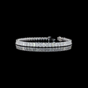 This 11.35-carat tennis bracelet in 14k white gold showcases a striking ensemble of 55 radiant-shaped diamonds, each expertly set in prongs to maximize light play. The north-south design orientation enhances the brilliance of the diamonds, with an average center weight of 0.21 carats per stone, creating a captivating shimmer that dances across the wrist. Ideal for a 7-inch fit, this piece offers a harmonious balance between elegance and comfort.